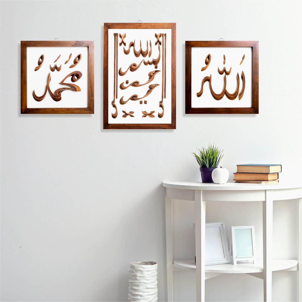 Name: Wooden Projects Kaligrafi Bambu Lafadz Allah Muhammad Bismillah Frame Kayu Jati Wall Decor - Bsam
