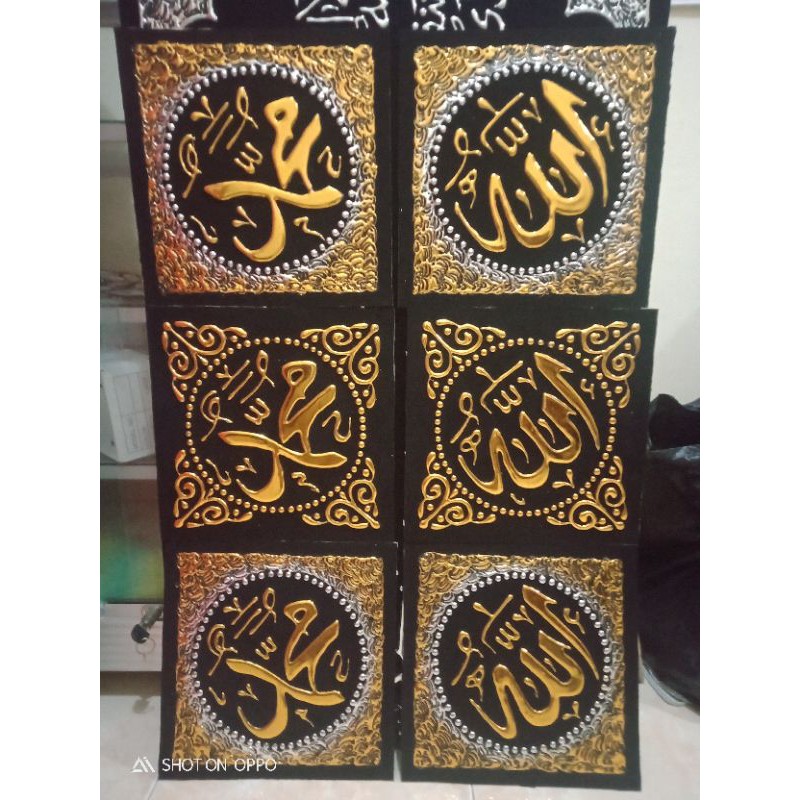 sepasang Allah Muhammad kaligrafi timbul emas tanpa bingkaiukuran 30x30cmharga untuk satu pa