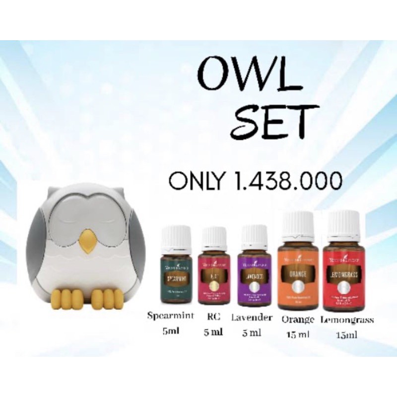 owl set young living essential oil•OWL DIFFUSER• SPEARMINT 5ml• RC 5ml / lemon plus (singapore oil)• LAVENDER 5ml• ORANGE 15ml• LEMONGRASS