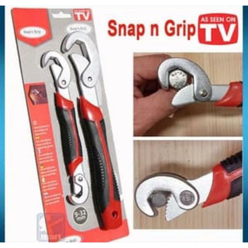 Snap N Grip - Universal WrenchSnap N Grip adalah sistem yang inovatif, yang terdiri dari dua kunci pas universal. Dengan dua kunci pas ini,Anda dapat melonggarkan atau mengencangkan semua jenis mur dan baut, terlepas dari ukuran dan bentuknya, seperti kunci pas beradaptasi sendiri. Solusi untuk semua masalah Anda dengan keran, katup, pipa, garis, radiator, boiler, roda, dllSpesifikasi :2 kunci pas universal untuk semua mur dan bautEfisien, praktis dan mudah digunakanSeketika mengurus semua peke