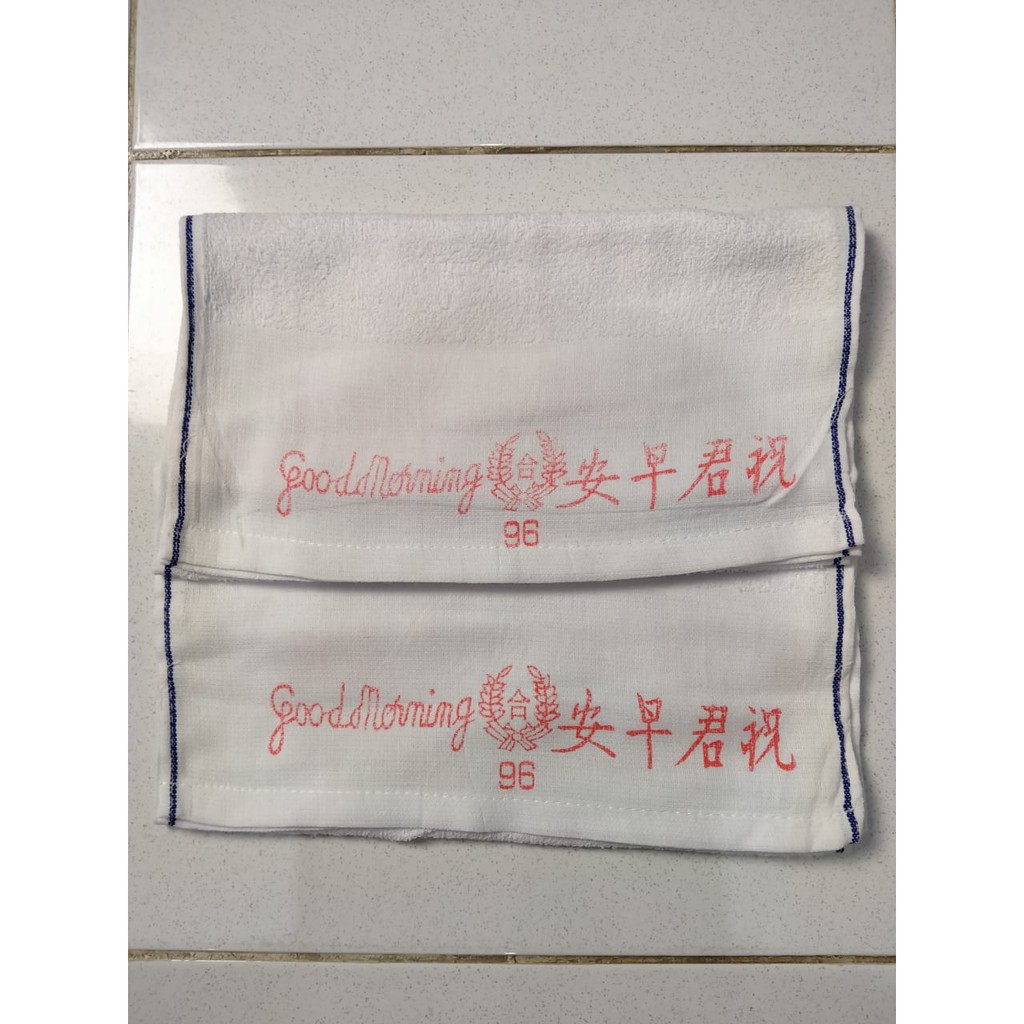 Sudah ready ya HANDUK GOOD MORNING PUTIH DAN TEBALHanduk Good Morning yang sudah terkenal yang kita jual ini versi tebal ya.ukuran Handuk nya yaitu :lebar 35 CM dan panjang 75cmWarna handuk nya PUTIH ya dan di ujung atas dan bawah ada tulisan GOOD MORNINGsilakan order ya jika sudah mem