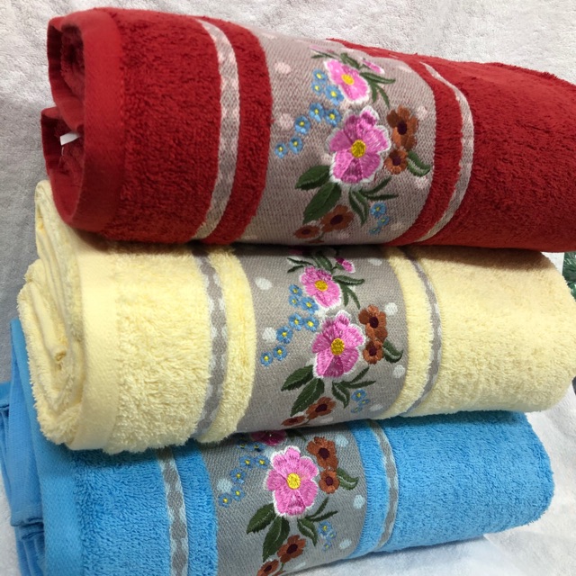 Handuk mandi terry palmer dengan motif kembang yang sangat menarik dan memiliki daya serap yang baik Terdiri dari 3 varian warna Merah CreamBiru Yuk segera di order Terima