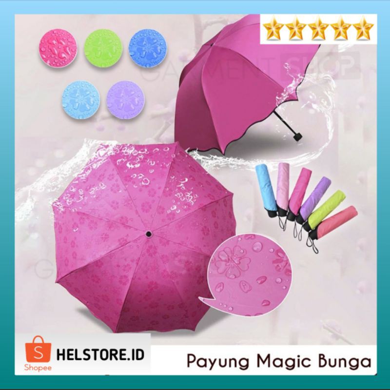 Payung Magic Lipat 3D Ajaib Muncul Motif Ketika Basah Hujan Deskripsi Produk :- Payung akan menjadi bermotif ketika basah / terkena air hujan. jika payung dalam kondisi kering akan terlihat polos- Tersedia 6 warna (Putih, Hijau, Biru Tua, Biru Muda, Pink, Ungu). WARNA KOSONG = DIKIRIM RANDOM- Dibuat dari kain anti UV- Besar payung ketika dibuka 91cm- Panjang payung ketika ditutup 26cm- Rangka payung terbuat dari besi- Sudah termasuk sarung payungLEBIH AMAN LAGI SILAHKAN CHECKOUT PACKING BUBBLE AGAR DIPACKING LEBIH TEBALPRODUK TIDAK BERGARANSI. SUDAH DICEK TIDAK BERLUBANG DAN BISA DIBUKA DENGAN BAIK.WAJIB VIDEO UNBOXING KETIKA PAKET DITERIMAMEMBELI=SETUJU NO KOM