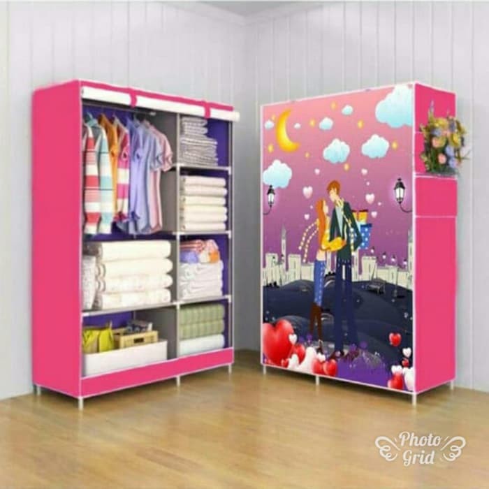 LEMARI PAKAIAN 2 SISI PORTABLE SERBAGUNADeskrispi Produk1.Lemari kualitas IMPORT dengan motif yang cantik.2.Terbuat dari material Pipa Besi + Kain Non Wooven fabric3.Mudah dibongkar pasang.4.Rangkanya kuat dan kokoh dari bahan stainless anti karat.5.Cover tutup full resleting, cara bukanya cukup dengan digulung ke atas.6.Terdapat Ada tali perekat untuk menahan gulungan pintu lemari saat dibuka7.Ukuran 105 x 45 x 170 cmwelcome dropshipper/res