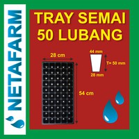 Spesifikasi :- Dimensi Produk : 54 x 28 x 5 cm- Ukuran Lubang Tanam :> Atas 4.4 cm X 4.4 cm> Bawah 2.8 cm X 2.8 cm> Tinggi 5 cm- Ketebalan 1 mmBeberapa keuntungan penggunaan tray semai ini adaTray semai/tray bibit/pot tray (seedling tray) adalah tatakan berbahan dasar plastik yang biasa digunakan sebagai wadah penanaman bibit sebelum ditanam dilokasi akhir. Tray semai dikembangkan oleh negara-negara di Amerika dan Eropa yang sekarang populer di seluruh dunia, dan secara luas diterima sebagai teknik baru dalam proses penyemaian tanaman. Penggunaan tray semai ini memiliki banyak keuntungan dibandingkan dengan metode penyemaian tradisional/konvensional adalah:1. Menghemat tenaga kerja karena waktu untuk menyemai dan memindahkan tanaman menjadi lebih sedikit2. Akar bibit tanaman tumbuh secara rapi dan teratur mengarah kebawah3. Benih mudah dilepaskan dari tray semai tanpa merusak bibit4. Memaksimalkan pemakaian lahan dan mudah dipindahkan tanpa resiko merusak tanaman5. Meminimalkan resiko dan mencegah tanaman terinjak atau terjatuh6. Dapat digunakan berulang kali sehingga mengurangi biaya produksi7. Mudah dalam menghitung bibit yang akan ditanam8. Dapat digunakan berulang k