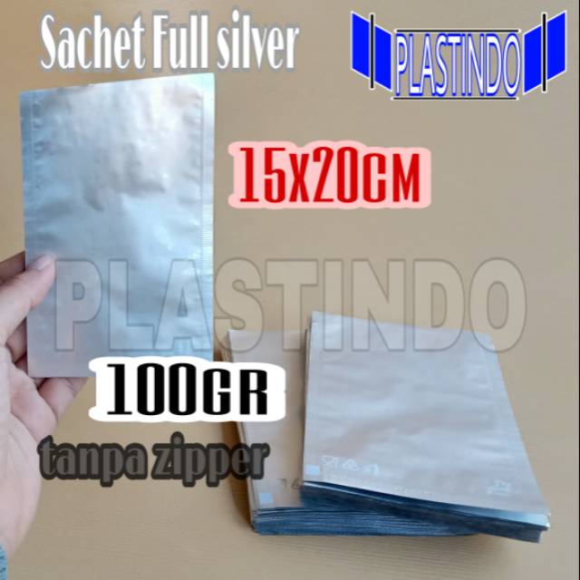 Name: Sachet Silver Aluminium Foil 100 Gr 15x 20cm Kpack Kemasan Bubuk Kopi Masker Bumbu