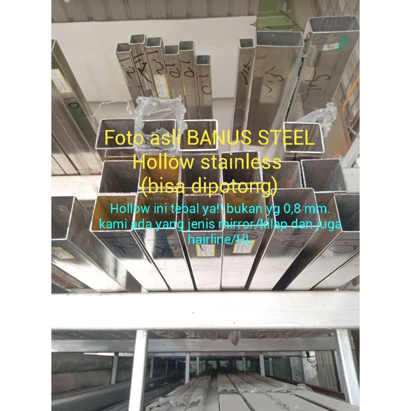 Mohon membaca deskripsi sampai selesai.*PENTING : Sebelum Bosku klik order, harap tanyakan dahulu ketersediaan barang atau pertanyaan lain jika ingin dipotong.Pipa hollow kotak stainless steel 201 PANJANG 6 METER (1 batang utuh)# NOTE : Mohon tulis di keterangan mau yg hollow HL (hairline) atau yg hollow mirror (kilap). Kami memiliki beragam ukuran dan ketebalan lainnya.Tersedia stainless 304-nya.#Kalau Bosku misal perlunya 180 cm saja, kita juga bisa potongin sesuai request dan nanti akan dikirimkan link lainnya.PENGIRIMAN :- Pengiriman produk PLAT 1 x 2 meter dan 3 meter (PLAT DOP STAINLESS, PLAT LUBANG, PLAT BORDES, PLAT HAIRLINE, PLAT MIRROR) akan kami gulung. Jika tidak mau digulung maka diwajibkan menggunakan packing kayu pallet oleh JNE trucking. Silahkan klik tambahan packing kayu.- PIPA, HOLLOW, AS, STRIP, SIKU dengan panjang 6 meter harus dipotong menjadi 2 atau 3 meter.- Ojol motor untuk pembelian barang tertentu saja yang bisa dibawa oleh motor. Pipa hanya bisa bawa maksimal 2 meter serta plat yg sudah dipotong (dibawah 1,5 mtr). Barang lain seperti KAWAT, FITTINGS, ELBOW, FLANGE, DOP, RING, LANGSOL, BUSA GOSOK, ENGSEL, RODA, SPON, BATOK bisa dibawa sampe maksimal 19 kg (instant)- Tanggal merah tidak ada pengiriman- Orderan yang masuk lewat dari jam 2 siang kemungkinan akan dikirim esok hari.Note :• Harga tidak terikat• Tidak menerima retur- Plat, pipa, hollow, AS, siku, strip yang SUDAH dipotong, tekuk, bending, roll TIDAK DAPAT DICANCEL. Mohon pengertiannya.Jika ada pertanyaan utk produk yang tidak ada si etalase silahkan chat aja ya ke adm