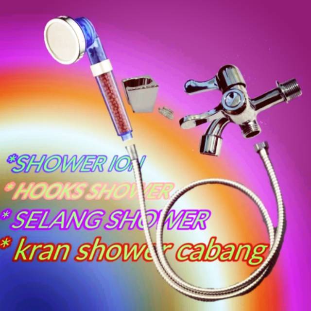 SPESIDIKASI PRODUCK#SHOWER ION* semprotan 3-4 x lebih kencang dibanding shower biasa dg tekananair yg sama.* 30% lebih hemat air * carbon atau cramik nano lebih full* 3 mode kluaran air( rainfull, massage, rainfull+ massage)# HOOKS/ BRAKET SHOWER * bahan plastik abs di lapis crhomesehingga lebih awet dan tahanterhadap korosi/ karat# SELANG SHOWER* panjang selang 150cm * selang berbahan stenlis #KRAN CABANG* finishing crhome mengkilap * jantung kran menggunakan bahan kuningan sehingga lebih awet.* menggunakan sistim seramik danbuka tutup hanya putaran sajaOVERALL: MANDI LEBIH PUAS DG PANCARAN AIR LEBIH KENCANG NAMUN HEMAT AIR MENGGUNAKAN SHOWER ION. SHOWER MANDI KESEHATAN BAGI KULIT DAN RAMBUT.# KAMI MENGUTAMAKAN KWALITAS, KEAWETAN PRODUCK UNTUK KEPUASAN CONS