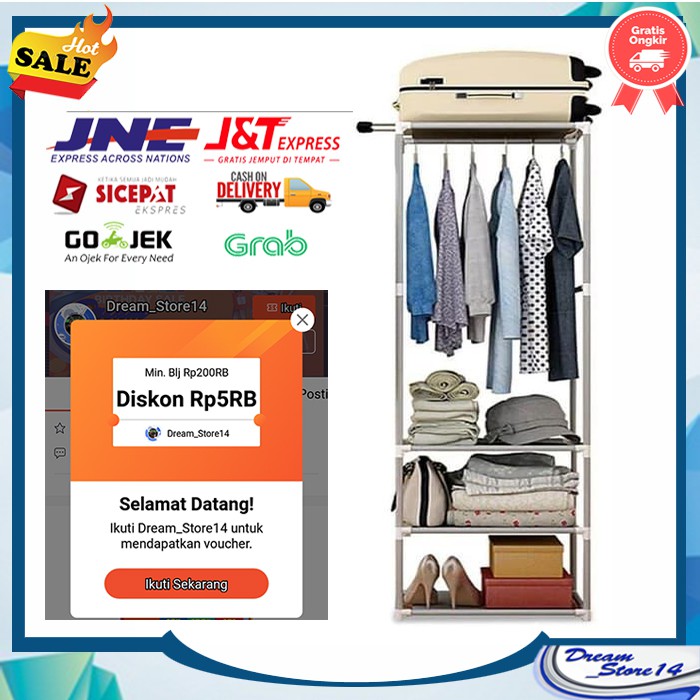 Toko Grosir Perlengkapan di Kabupaten Samosir Stand Hanger Rak Baju Portable / Lemari Pakaian Gantung Rak Serbaguna Type Rg Ds23 dari Tidak Ada Merek Kota Jakarta Barat